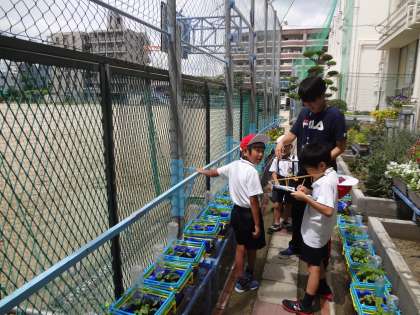 生活科で「あさがおの観察」をしたり、算数で「あわせていくつ」を学んでいます。