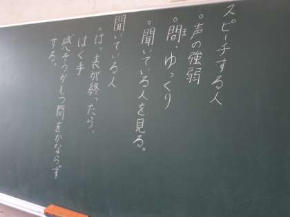 スピーチをグループで聞きあっています。