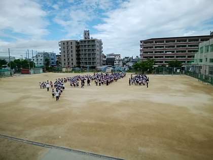 その後揺れが収まるまで、運動場で待機し、地震から身を守る方法について確認しました。