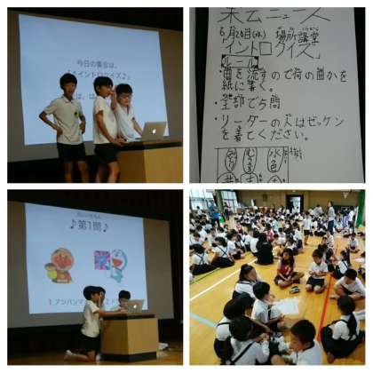 今日の児童集会は「イントロクイズ」でした。