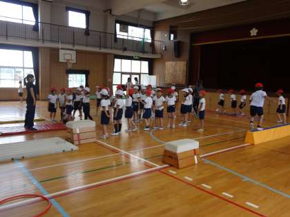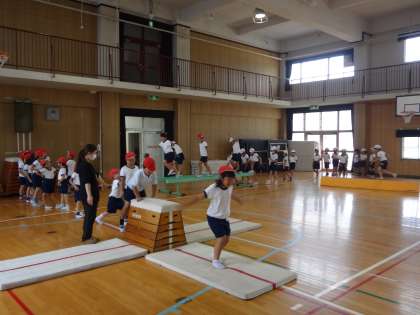 平均台・とび箱・マット・フラフープを使って、いろいろな運動をしています。