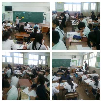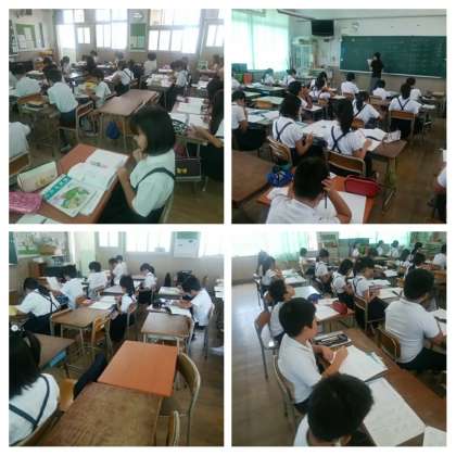 社会科では、歴史上の人物についてエピソードを交えた話が聞かれました。子どもたちは興味津々でノートには整然と記録されています。