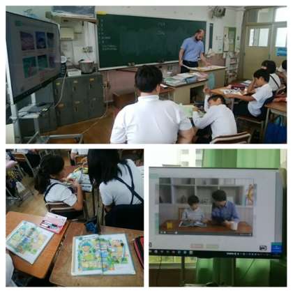 6年生の英語では、ビデオの会話から何を話しているのかを日本語で記入することにチャレンジしていました。