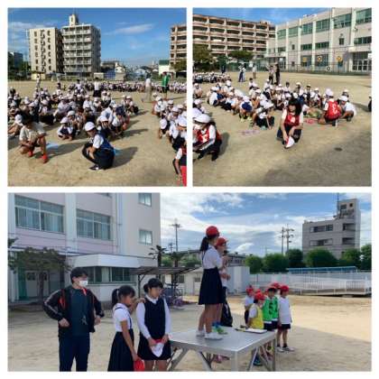 集会委員の人がおにになり、スキップでおにごっこをします。
