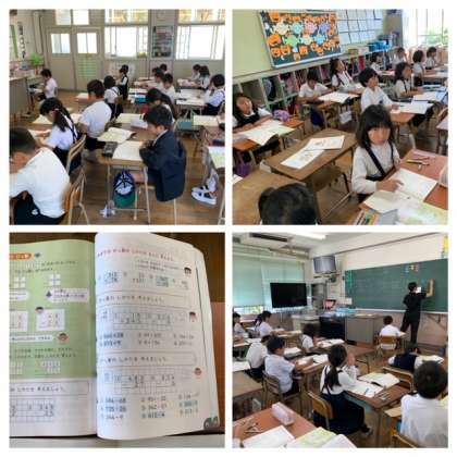 算数では、大きい数のひっ算について学習していました。