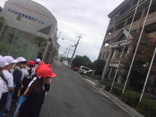 インタビュー後、わかば保育園、瑞光苑前を通り学校へ戻って行きます。
