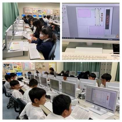 6年生はパソコンを使って、社会見学新聞を作っていました。