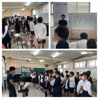 6年生の合唱では、「広い空の下で」の下のパートの練習に入っていました。