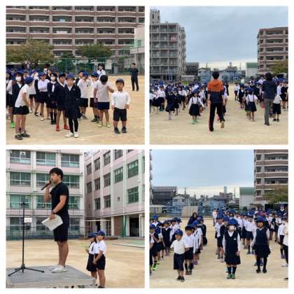 約1カ月ぶりに全校朝会を行いました。