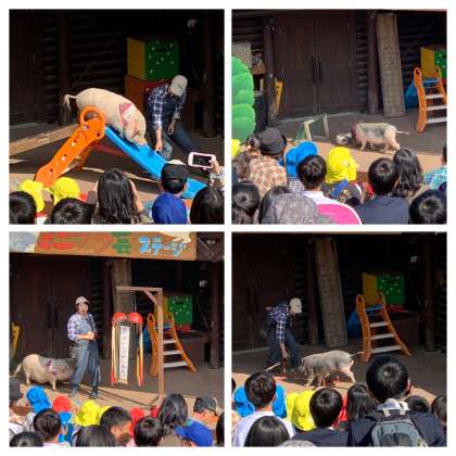 ミニブタショーや、ブタと触れ合って過ごしました。