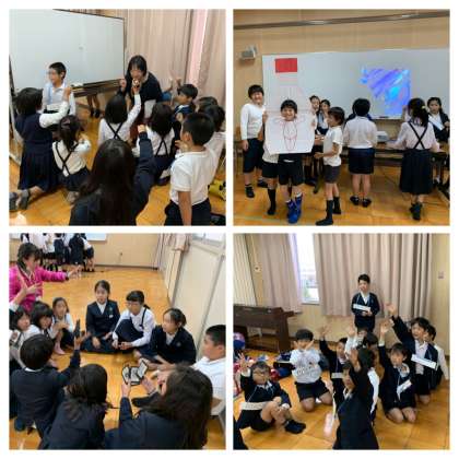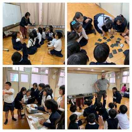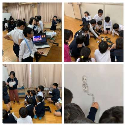 4つのグループに分かれて、プロジェクターに映る絵のまちがい探し、目を閉じてスケルトンのパーツ合わせ、カード合わせなどを行いました。