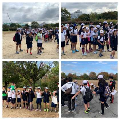 ポイントをクリアすると、縦割り班で仲よく遊んでいました。