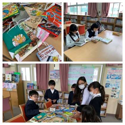 図書室に足を運ぶ子どもを増やそうと、図書委員会のメンバーや図書館支援員さんが活躍してくれています。