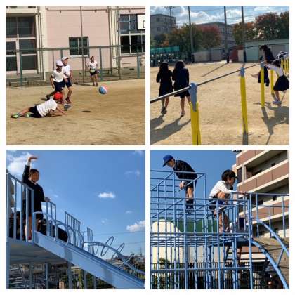 ボールや鉄棒、コンビネーション遊具などで元気に遊んでいます。