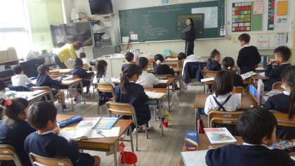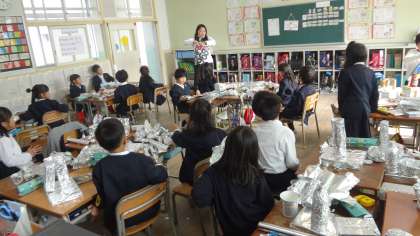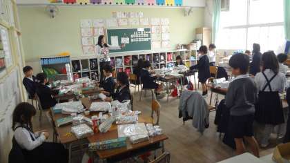 算数でどちらが広いか考えたり、図画工作で作品づくりをしたりしています。