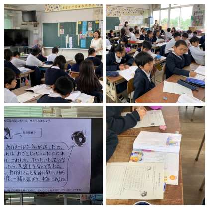 5年生の道徳では、友情・信頼をテーマにして、自分の考えをワークシートに書きながら学習を進めていました。