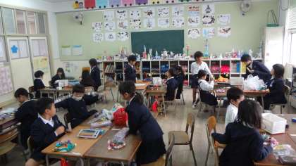 1年生は、国語で登場人物の気持ちを考えたり、リースづくりをしています。