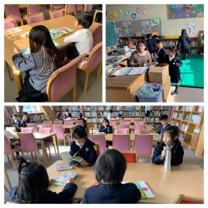 図書の時間だけでなく、休み時間の図書館開放にもたくさんの児童が参加していました。