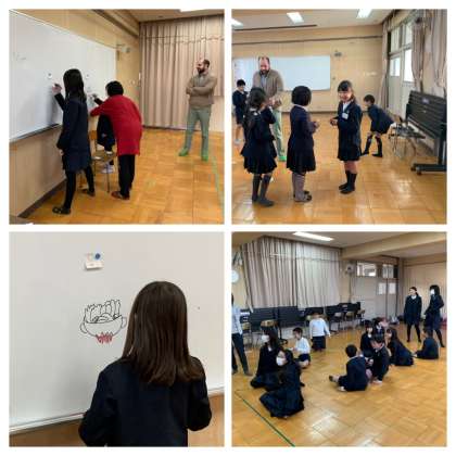 5・6年生の国際クラブでは、イラストを描いて英語で当てるクイズで盛り上がっていました。