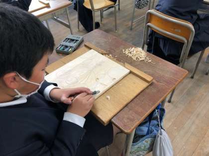 丸刀、三角刀、切り出し刀をしっかり使い分けて、丁寧に彫り進めることができています。