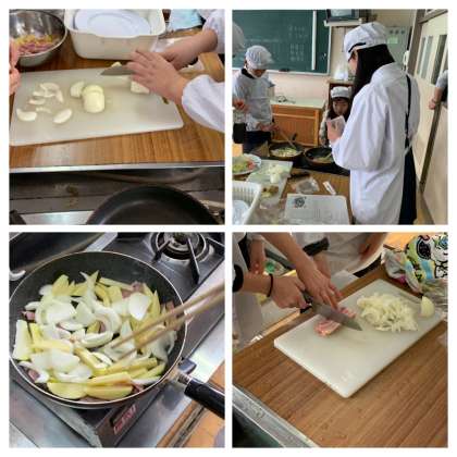 6年生が、家族に喜んでもらえるようなおかずづくりにチャレンジしていました。