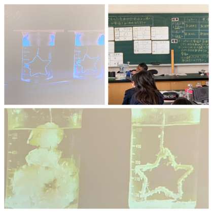 5年生の理科では、粒を取り除いた水溶液から、ミョウバンや食塩が取り出せるかを予想し、実験で確かめていました。