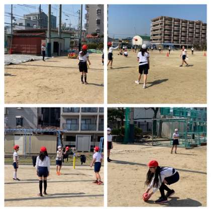 5年生がパス練習をした後、タグラグビーに取り組んでいました。