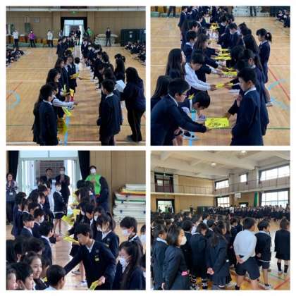 ゼッケンの引き継ぎや、感謝状の贈呈が5年生・6年生の間で行われました。
