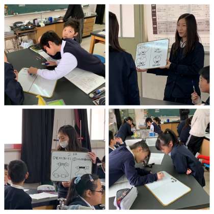 5年生の理科では、強い電磁石をつくるにはどうしたらよいだろうか?という問いに対して個人の予想をもとにグループで話し合ってまとめました。
