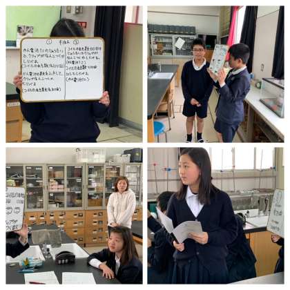 各班の代表が発表ボードを使いながら実験の計画を発表しました。