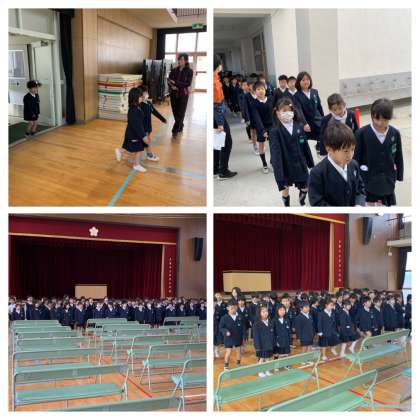 1年生は入学式で入学児童を迎える練習を、6年生は卒業式で歌う歌の練習をしていました。
