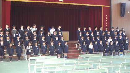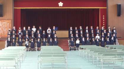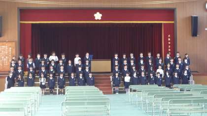 1年生は、入学式での歓迎の催しの練習をしています。