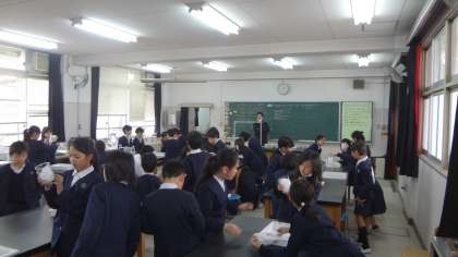 4年生は理科で「空気中の水蒸気を水にもどす」実験をしています。