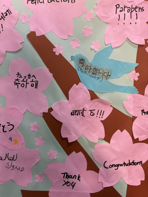 よく見ると、メッセージカードが書かれています。しかも他国の言葉でおめでとうがたくさんありました。
