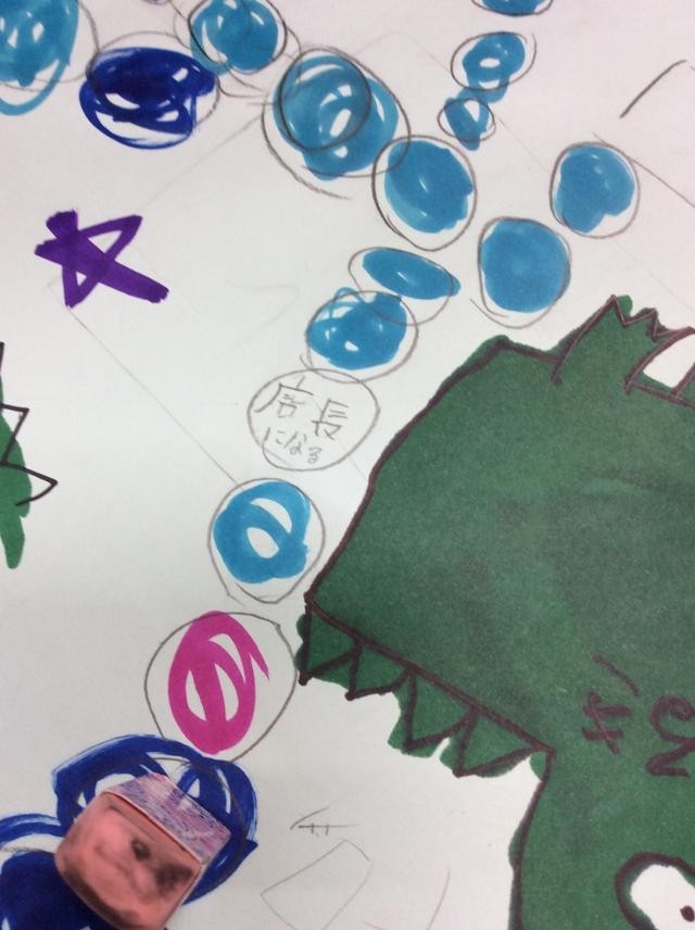 いろんなマス言葉あって、絵やイラストがたくさん描いてあり、みんなで楽しくすごろくゲームに夢中になっていました。