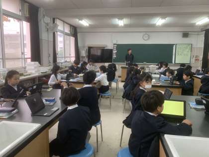 理科の学習でタブレットドリルに取り組んでいる様子です。