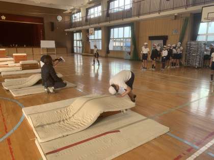 4年生は、跳び箱運動に取り組んでいます。台上前転をみんな上手にできるようになりました。