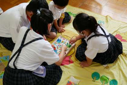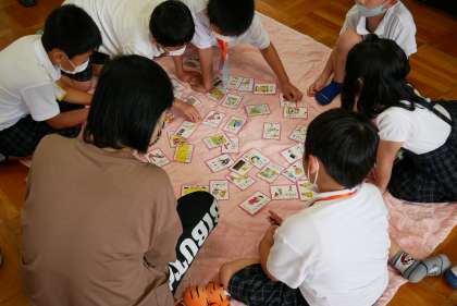 熊猫班級(ションマオパンジー)交流会を行いました。子どもたちは「中国語カルタ」の班と、「中国すごろく」の班に分かれてゲームに興じました。先生方も参加して、ゲームは大盛り上がりでした。