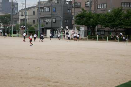 今日は朝から厳しい蒸し暑さで、陽ざしの下にいるとそれだけでもじわじわと汗をかきそうでした。そんな中でも、外で遊べることがたまらなく嬉しいといった顔をして、元気に外で遊んでいる子どもたちがたくさんいました。