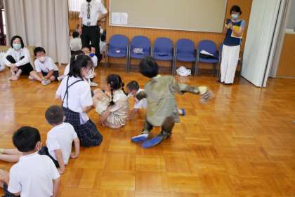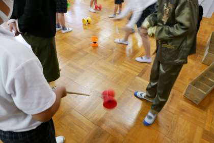 みんなで一緒に、ハンカチ落としや中国ゴマ(ディアボロ)で遊んだり歌を歌ったりして、共に学ぶ仲間と絆を深め、楽しい時間を過ごしました。