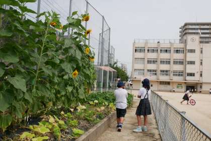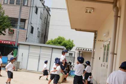 夏に向けどんどん暑くなっていく中、子どもたちの元気は教室の中に留まることなく、外へ出て「ドッヂボール」や「かけっこ」をしています。他にも、学習園の植物を観察したり、日陰に集まって談笑したり。セミの抜け殻を探している子もいました。