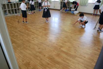 一学期も残すところ後わずかとなり、全学年で校内、各教室の大掃除をしました。普段はあまり見ない窓枠や棚の後ろまで、机も外に出して丁寧に掃除しました。四年生までは明後日から夏休み期間になりますが、六年生は二日間の臨海学習、五年生は23日から三日間の林間学習があります。けがに気をつけて、当日元気に出発できるよう過ごしてほしいと思います。
