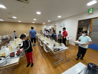 5年林間学習7 公開日 2021/07/23 更新日 2021/07/23 お知らせ ?夕食 各班の食事係がみんなのお茶やご飯、汁椀を配り用意を手伝います。 今日のメニューはハンバーグ、唐揚げ ポテトサラダ、オニオンスープなどてす。 山登りでお腹を空かせていたので、ほとんどの子どもが完食していました。 この後はキャンプファイヤーを行います。 いいね(0)