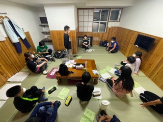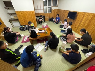 各班の班長が集まって、班や部屋での困っていることや問題を出し合って、今後どうしていくかなどについて話し合いました。班長だけが考えるのではなく、副班長や班のメンバーとしっかり問題について相談して、解決していくことを確認し合いました。今日より明日は、さらによりよい活動、そして生活態度で過ごせるようになりそうです。