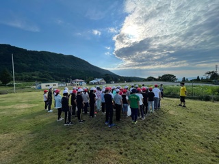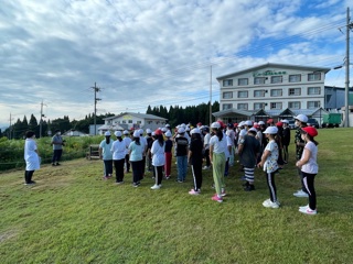 朝の検温、健康観察では、体調の悪い子どもはいません。全員元気に、朝の体操を行いました。