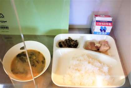 9/4(金)の献立は、焼きとり みそ汁 なすのそぼろいためでした。