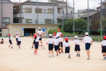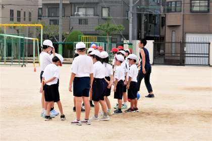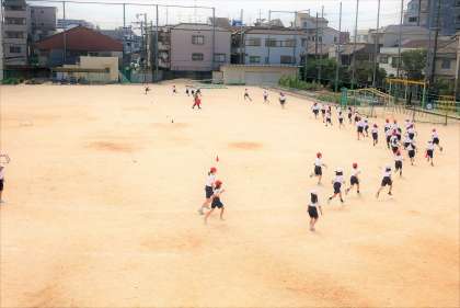 今日の三年生の体育では、ランニングとラジオ体操を行った後、ボール運動で『ポートボール』をしました。
