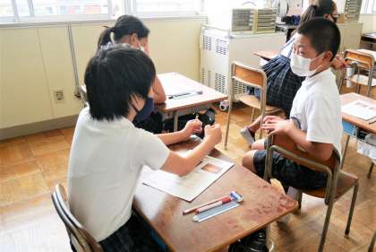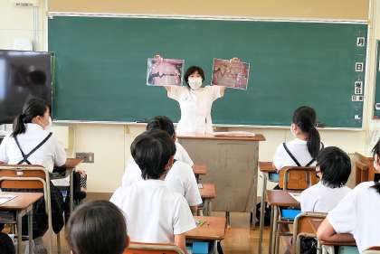 一つは『動物園の猿』もう一つは『野生の猿』の写真ですが、片方は虫歯が多く、もう一つは健康な歯の写真でした。どちらが『野生の猿』『動物園の猿』の歯かをみんなで話し合った結果、「歯のきれいな方が動物園の猿」という意見が多数でしたが、理由は、『動物園の猿』の方が「飼育員の人が栄養や体調を管理しているから」です。「歯のきれいな写真は野生の猿」と考えた子どもたちは、「何でも食べるので、あごの力が強く、免疫力が高い」という考えでした。