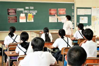 今日は、保健指導として歯科衛生士の方に、歯や歯ぐきの健康について指導して頂きました。