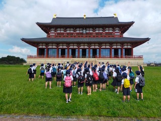 平城宮跡をパックに記念写真を撮りました。